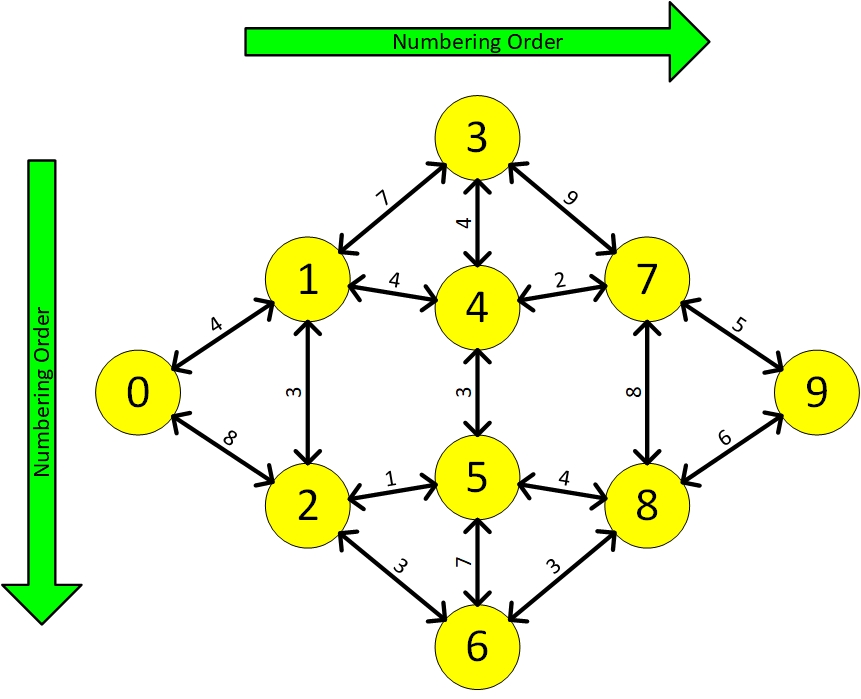 from origin to destination. Weighted graph can means travel time, distance